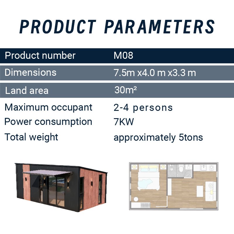 | External Dimensions | 7.5m (L) x 4.0m (W) x 3.3m (H) |