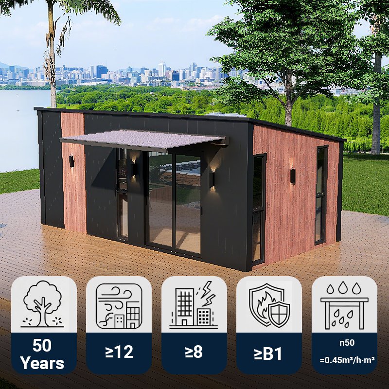 - Frame: Lightweight Galvanized Structure Steel Frame (Wall & Bottom Modules)