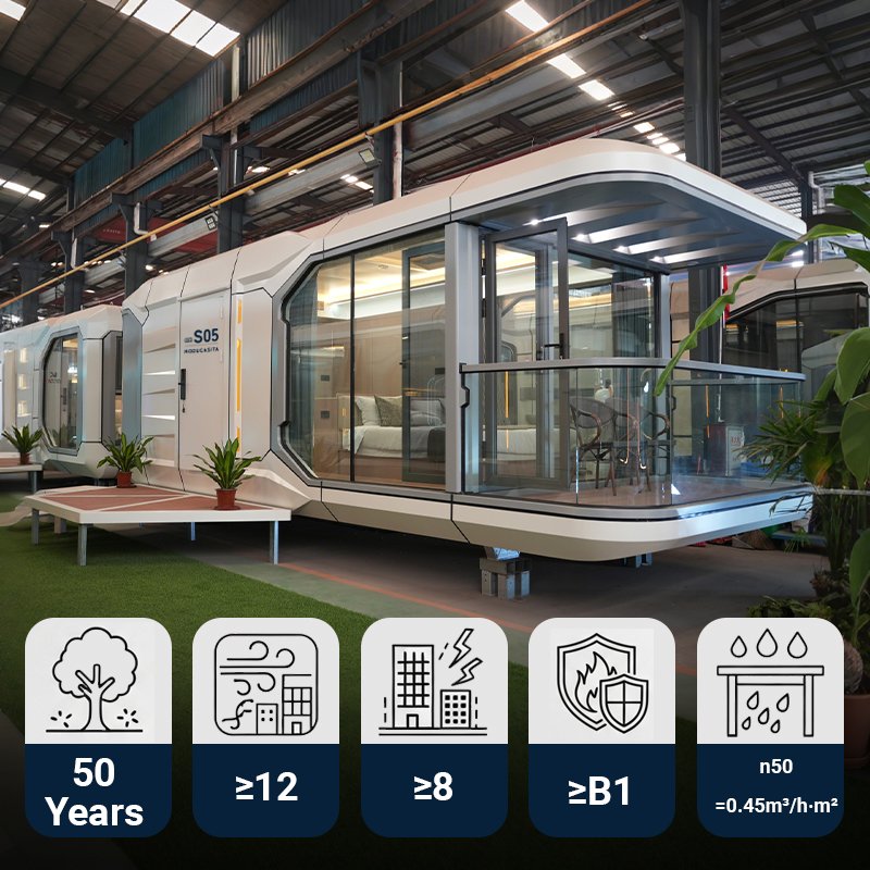 S05 Panoramic Balcony Space Capsule | 30m² Luxury Prefab Suite